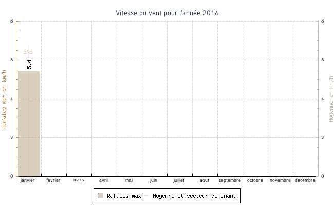 | janvier | 0.4 °C | 0.4 °C | 0.4 °C | 0.4 °C | 0.4 °C | 6.8 km/h | 5.4 km/h | ENE |